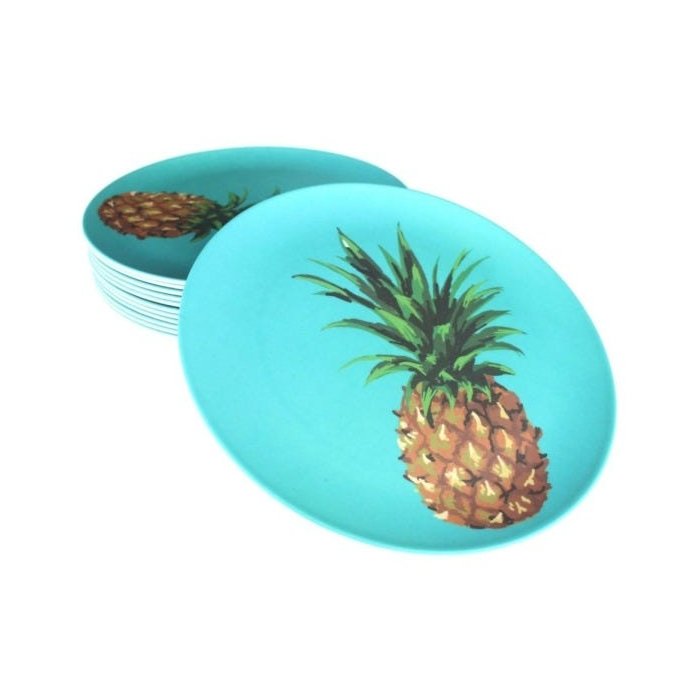 Jogo 4 Prato Verde Raso Melamina Plástico Abacaxi 25,5cm