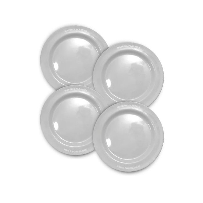 Jogo 4 Pratos Redondos Raso 28cm de Melamina Branco