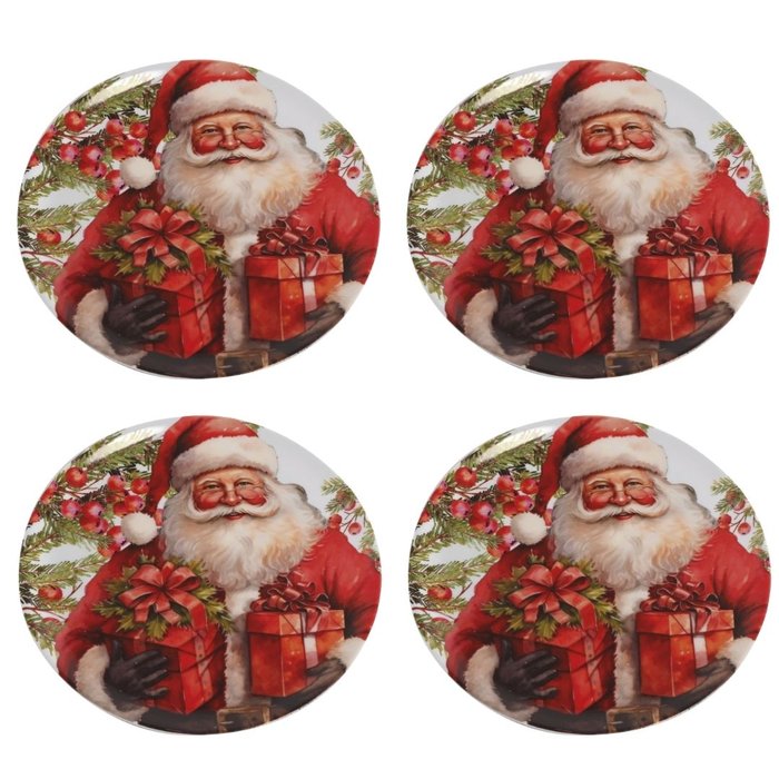 Jogo 4 Pratos Sobremesa Melamina Prime Estampa Natalina - Magizi