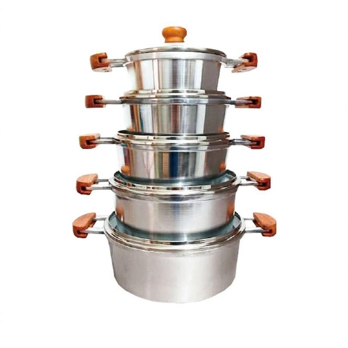 Cozinhe com praticidade e estilo com o Jogo de 5 Panelas de Alumínio Batido Fundido com Tampa de Vidro Temperado!Com Cabo de madeira. Marca: Extang. Durabilidade imbatível:Feito de alumínio fundido grosso, este conjunto de panelas resiste a anos de uso intenso sem perder a forma ou deformar.Ideal para quem busca panelas que durem por gerações!Cozinhar fica mais fácil:O alumínio fundido distribui o calor uniformemente, evitando pontos quentes e garantindo um cozimento perfeito dos seus alimentos.As tampas de vidro temperado permitem que você monitore o cozimento sem precisar levantar a tampa, preservando o sabor e os nutrientes dos alimentos.Descrição: