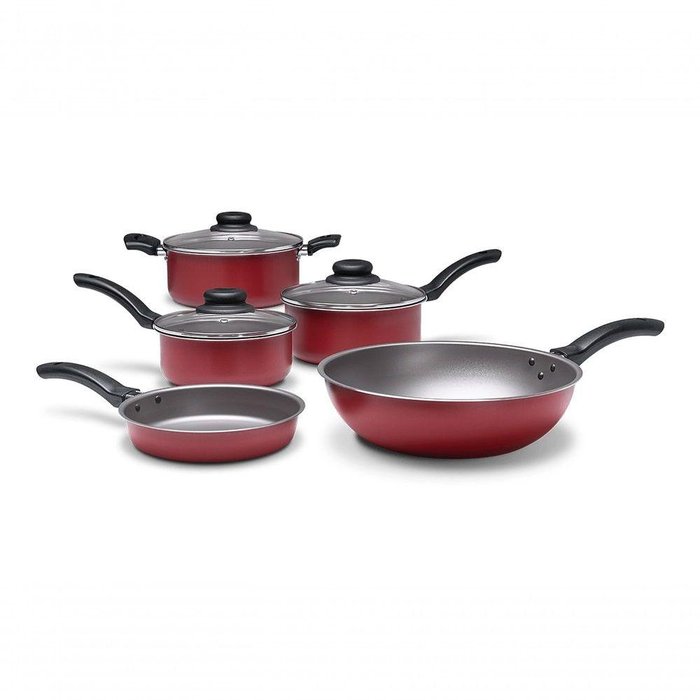 Jogo 5 Panelas Ruby Vermelho Antiaderente Pro Flon Panelas, Caçarola, Frigideira e Wok em Alumínio
