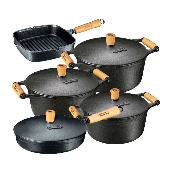 Jogo 5 Pçs Caçarolas + 2 Frigideiras Ferro Panela Mineira