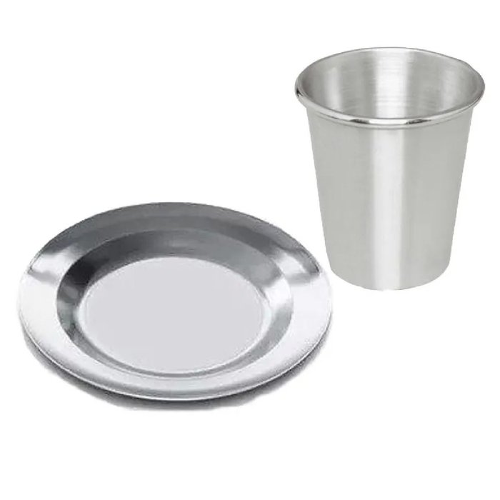 Pratos de alumínio escolar feitos com alumínio reforçado disponível no tamanho de 22,5 cm de diâmetro, e copo de aluminio 250ml que conserva a temperatura das bebidas. Muito usado em escolar, creches, organizações, empresas e etc. Ideal para as crianças pois quebra.