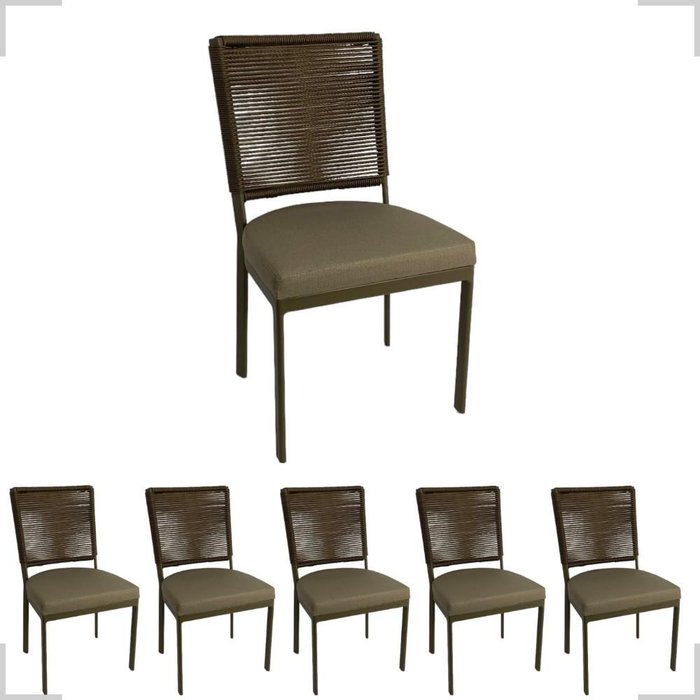 Jogo 6 Cadeiras de Alumínio Corda Sintética Assento 50cm Alt