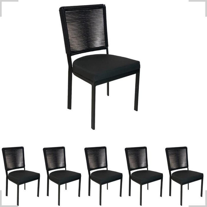 Jogo 6 Cadeiras de Alumínio Corda Sintética Assento 50cm Alt Preto Preto