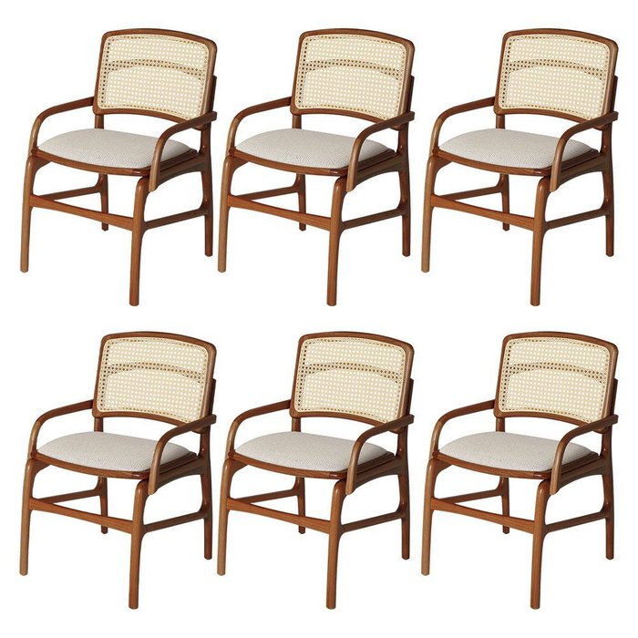 Jogo 6 Cadeiras de Jantar Florença Estrutura em Madeira Jequitibá Terra Braço Encosto Palha Linho Be