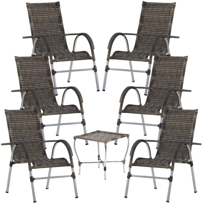 Jogo 6 Cadeiras e Mesa Vênus para Area Externa Chuva Sol Resistente Trama