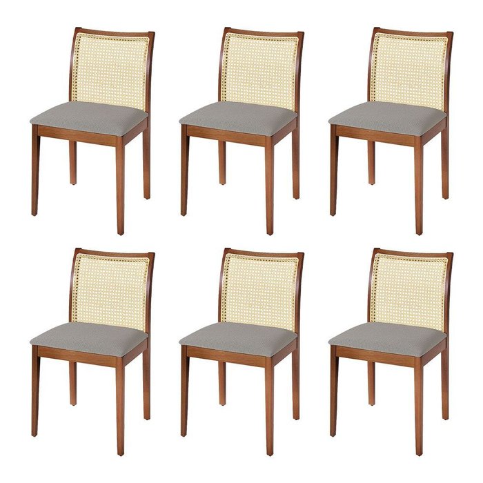 Jogo 6 Cadeiras para Jantar Juliana Jequitibá Terra Estrutura em Madeira Maciça Linho Cinza