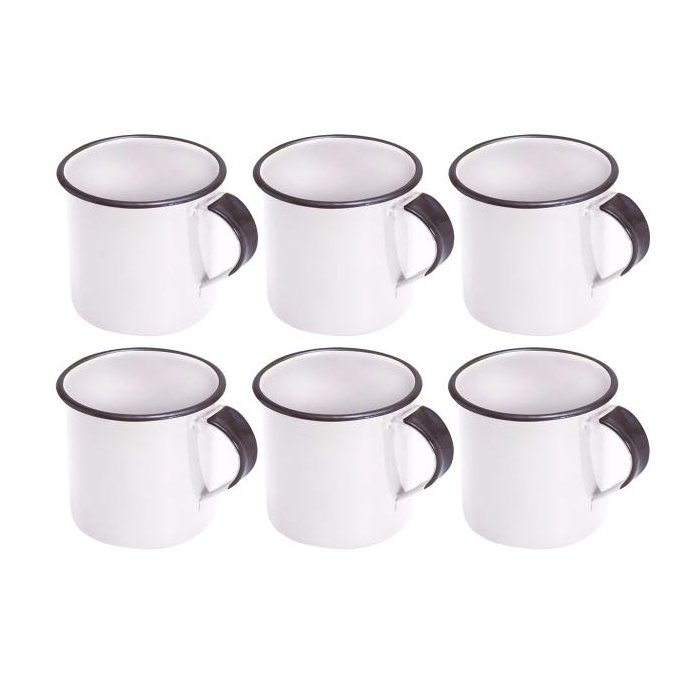 Garantia: 90 Dias / Peso de cada Caneca: 40g / Cor: Vermelho, Branco, Marrom, Azul, Verde, Cinza ou Colorido / Ref: 6CANECAS-ESMALTADAS