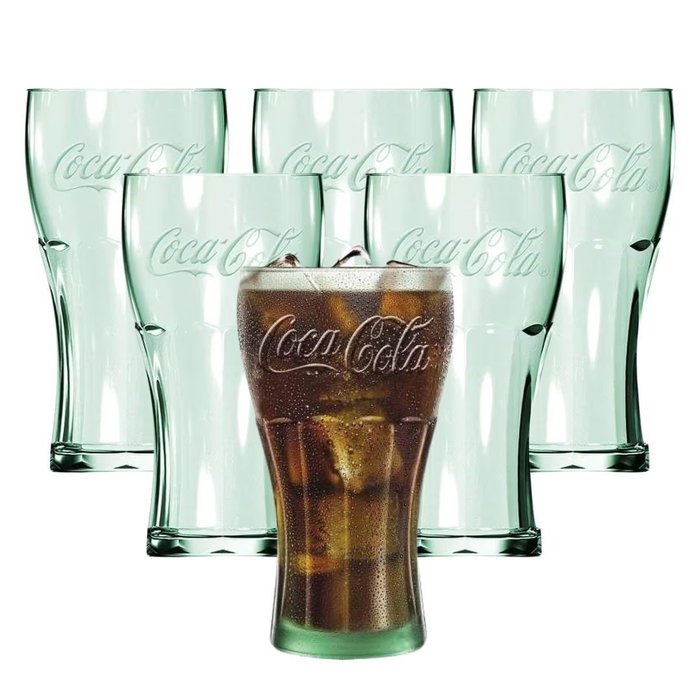 Jogo 6 Copos Coca-Cola Contour Vidro Verde 470ml