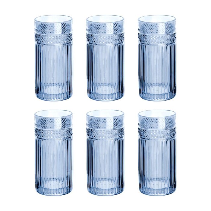Jogo com 6 copos de vidro para água 360 ml azul linha palace l'hermitage