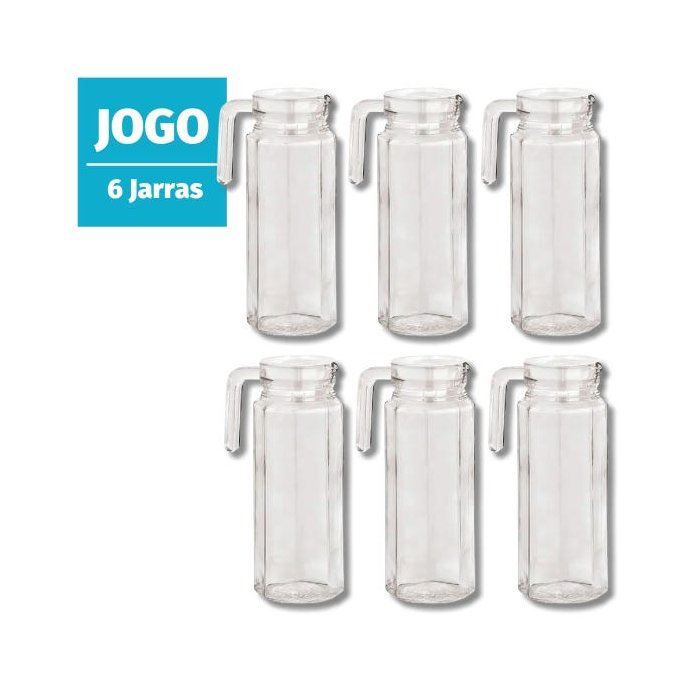 Jogo 6 Jarras de vidro com tampa veneza 1l suco cha cozinha