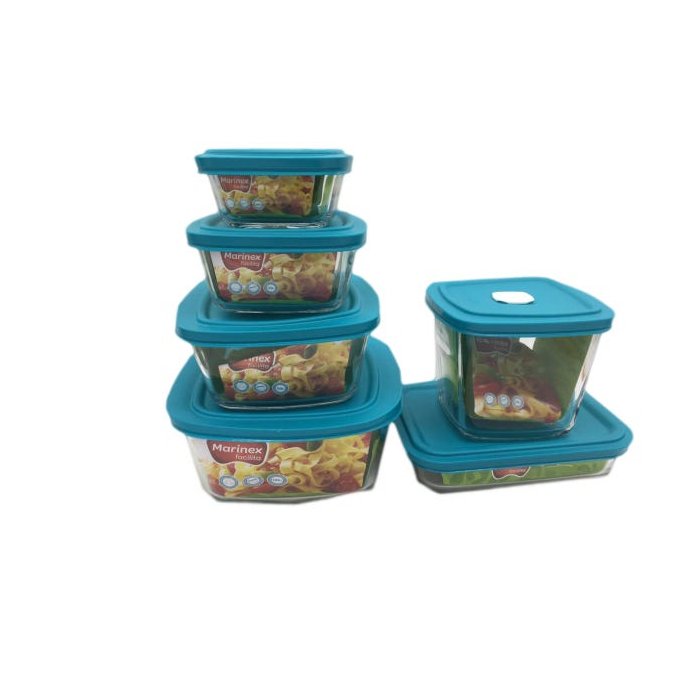 Jogo 6 Potes Vidro Marinex Facilita Vap Com Tampa Plástica Azul