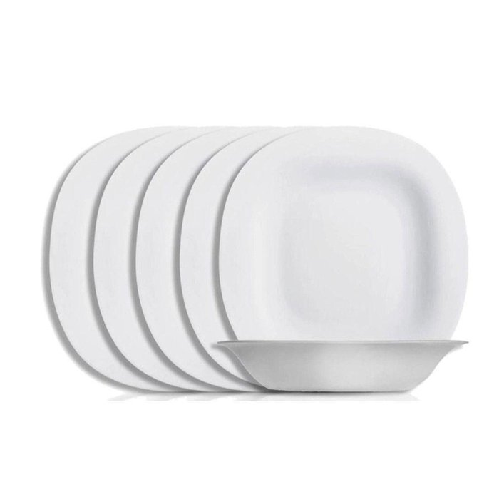 Jogo 6 Prato Fundo Branco Quadrado Square 22cm Vidro Opalino Sopa Massas Em Casa Tem
