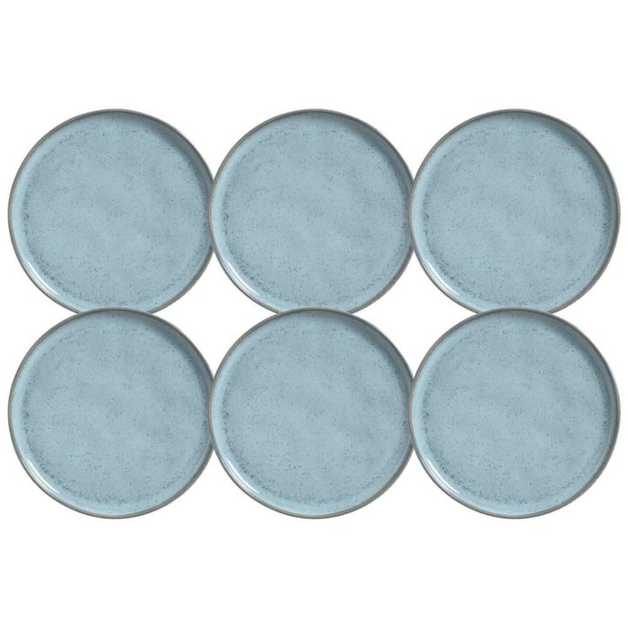Jogo 6 Pratos Azuis Cerâmica Rasos 27cm Bio Breeze Porto Brasil Mesa Posta Refeição Azul
