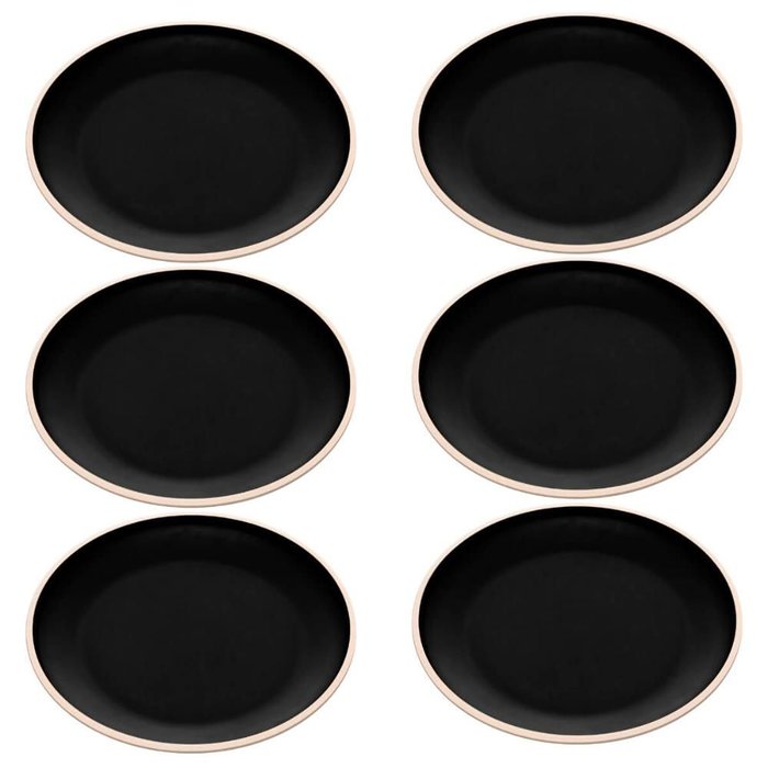 Jogo 6 Pratos de Sobremesa 21,5cm de Melamina Class Preto Raso Lanches Bolos Tortas Wolff