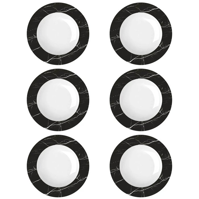 Jogo 6 Pratos Germer Fundos Preto e Branco 23cm Nero Porcelana com Estampa Mármore.