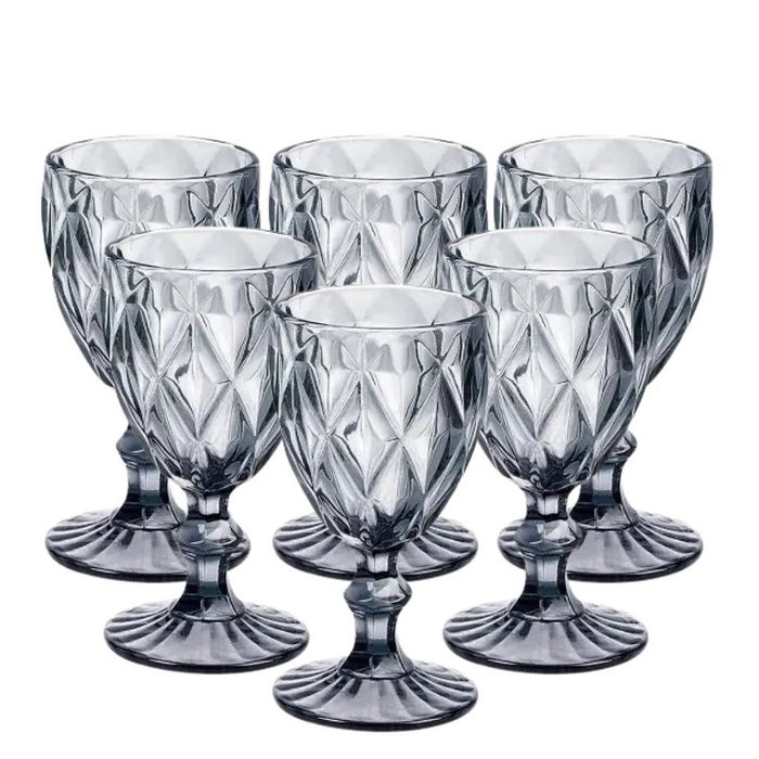 Jogo 6 Taças Diamond Vidro Diamante Negro Fumê 340ml