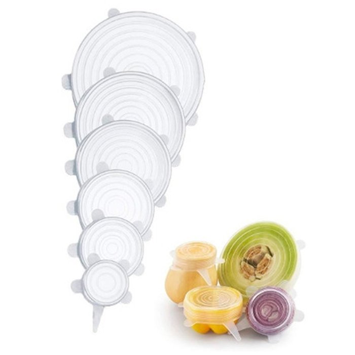 Jogo 6 Tampas de Silicone Reutilizável Elástica para Potes