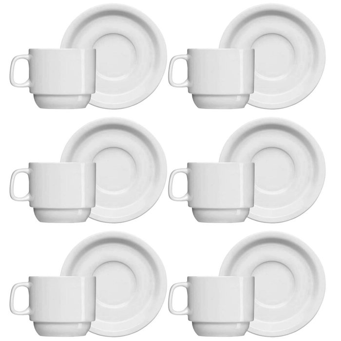 Este jogo de xícaras de chá com pires 215ml da linha Classe Única Iguaçu traz suavidade e requinte em total equilíbrio. O design clean e minimalista dessa louça inspira naturalidade para qualquer tipo de mesa. Desenvolvidas em porcelana branca, estas xícaras com pires são perfeitas para servir chazinhos em: restaurantes, hotéis e bares, atendendo todos os requisitos imprescindíveis nesses ambientes: resistência, fácil armazenamento e reposição garantida.