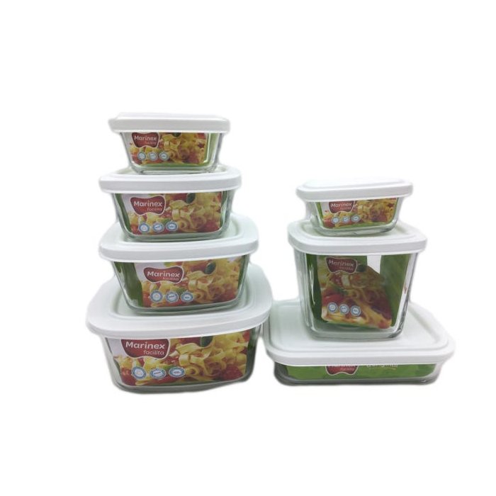 Jogo 7 Potes Vidro Marinex Facilita Com Tampa Plástica Branco