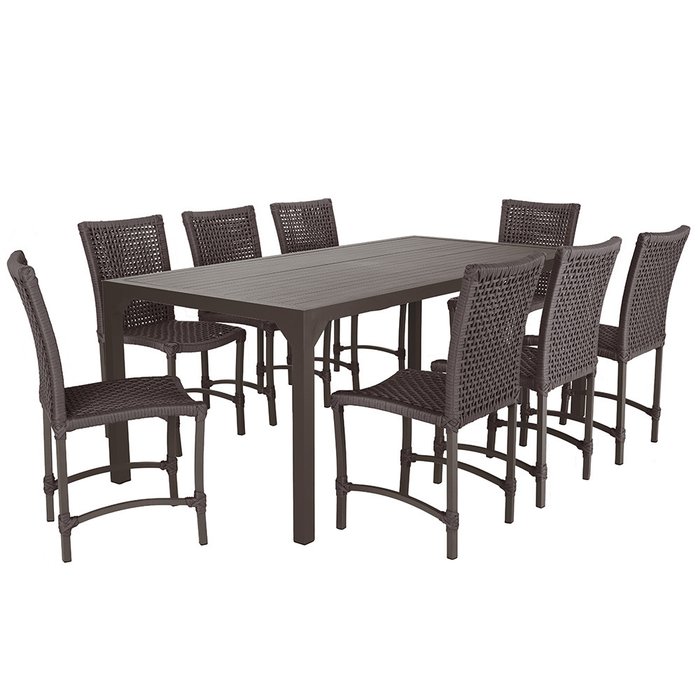 Jogo 8 Cadeiras Cannes Corda Náutica e Mesa Retangular Ripada 2,00m em Alumínio para Edícula, Jardim Marrom