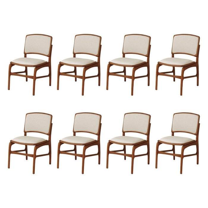 Jogo 8 Cadeiras para Jantar Florença Madeira Jequitibá Terra Encosto e Assento em Tecido Linho Bege
