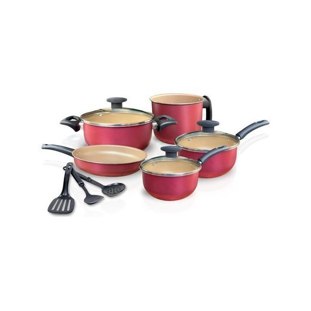 Jogo 8 Panelas Caçarola Panelas Completo e Utensilios - Cereja/bege Cereja/Bege