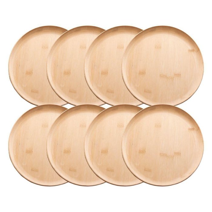 Jogo 8 Prato de Sobremesa Pratinho Bambu Natural Ecológico Lyor 18x18cm