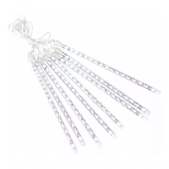 Jogo 8 Tubo Snow Led Bivolt Chuva Meteoro Cascata Pisca Bran Branco