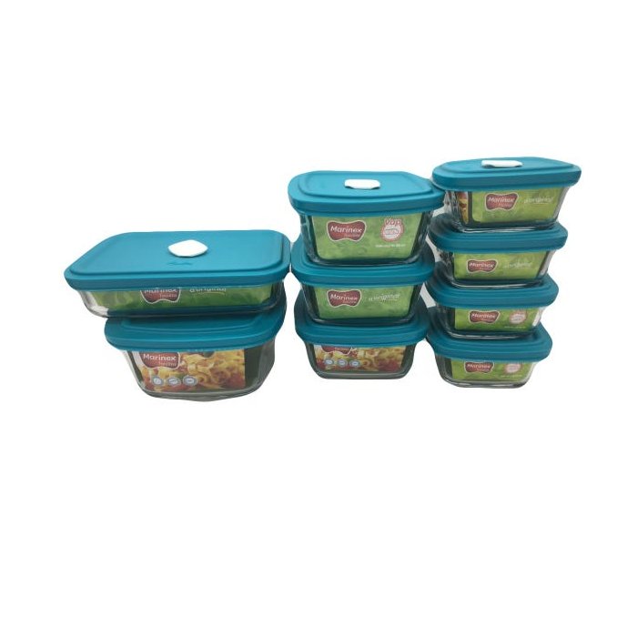 Jogo 9 Potes Marinex Vidro Facilita Com Tampa Plástica Azul