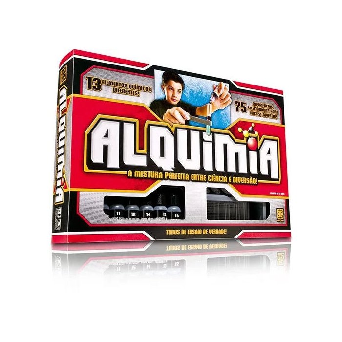 Na natureza há vários elementos que se transformam e mudam de cor. A mistura de muitos deles gera outros elementos. Com Alquimia você mesmo vai fazer e entender essas misturas! Combinando dois ou mais componentes, você observará o surgimento de uma substância totalmente nova, com cores, densidades e propriedades diferentes. Parece mágica, mas é ciência! Alquimia: uma fórmula que mistura aprendizagem e diversão! 75 experiências selecionadas para você se divertir. Mais Informações: Indicado para: meninas e meninos Idade: a partir de 12 anos Dados Técnicos: Tamanho da Embalagem: 28,0 x 41,5 x 8,0 cm Fabricante: Grow Contém: 75 fichas de experiências e mágicas, 2 bisnagas vazias, 4 tubos de ensaio de vidro, 1 estante plástica, 1 pinça plástica, 1 espuma para limpeza dos tubos de ensaio, 1 unidade de óculos de proteção e 13 bisnagas com substâncias e 1 manual de instruções Referência: 2396 Inmetro - CE-BRI/IQB 000202 - NM300/2002 - OCP 0006