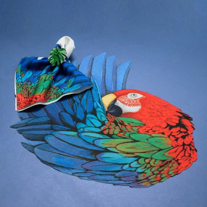 A coleção Soraia da Felicittá traz o fascínio da arara vermelha em peças únicas e exclusivas. Inspirada na beleza exótica desta ave, a estampa é rica em detalhes e cores como o vermelho, verde e azul royal, transmitindo toda a força e elegância do animal. Feito à mão em aquarela digital em um design exclusivo para a Felicittá. Os materiais são de alta qualidade, proporcionando durabilidade e praticidade no uso diário. Ideal para quem busca sofisticação e exuberância em cada detalhe da decoração. Adquira já a sua coleção Soraia e adicione um toque de estilo à sua mesa com a coleção Soraia. Encante seus convidados com a beleza da fauna brasileira.