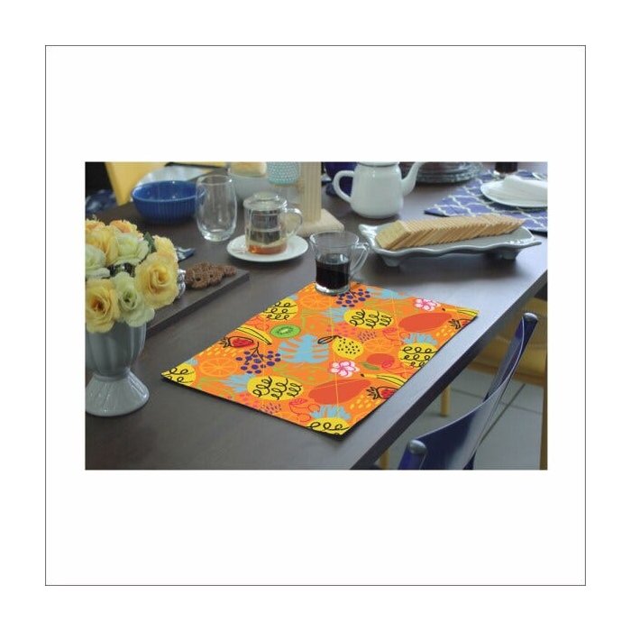 Jogo Americano De Tecido Matelasse Dupla Face Frutas Desenhos Fundo amarelo- 4 Peças colorido