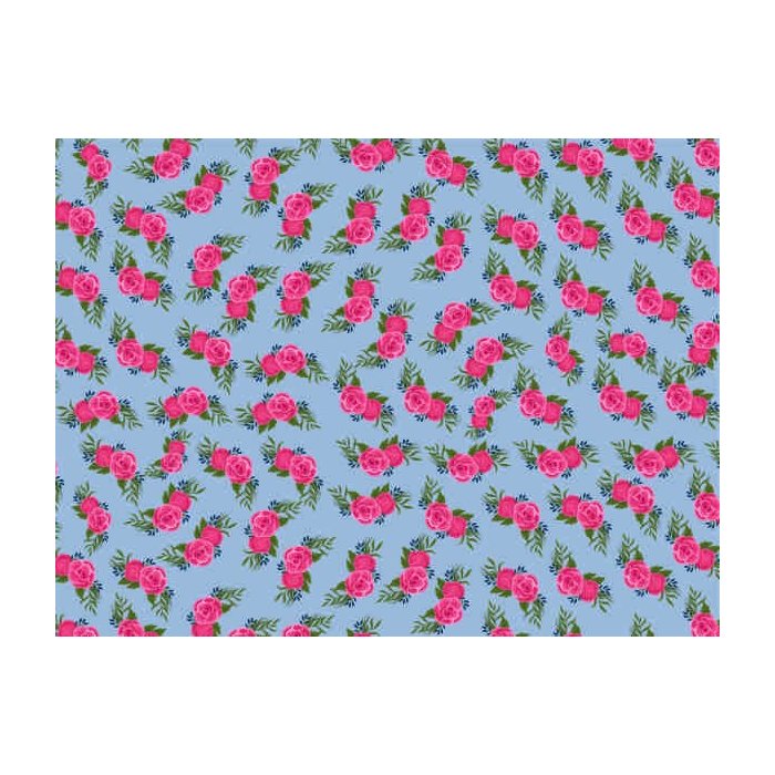 A estampa exclusiva floral, deixará sua mesa linda. A estampa floral Biarritz, combina rosas vermelhas com o fundo azul claro.