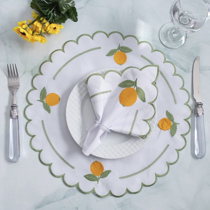 Jogo Americano Sousplat Mesa Posta Bordado Guardanapo 12 Peças:Limão Siciliano Branco