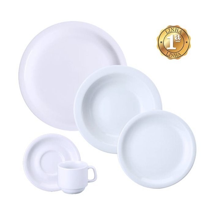O Aparelho de Jantar e Chá Porcelana Schmidt conta com 30 peças, divididas entre Pratos Rasos, Pratos Fundos, Pratos de Sobremesa, Pires e Xícaras, é perfeito para a gastronomia, com pratos planos e xícaras empilháveis. As peças complementares são perfeitas para serviços de Café da Manhã, Room Service e Cafeterias. Com design atemporal, as porcelanas da linha convencional podem ser facilmente combinados com outras porcelanas, ou completadas por outras peças da linha, para formar uma mesa magnífica!