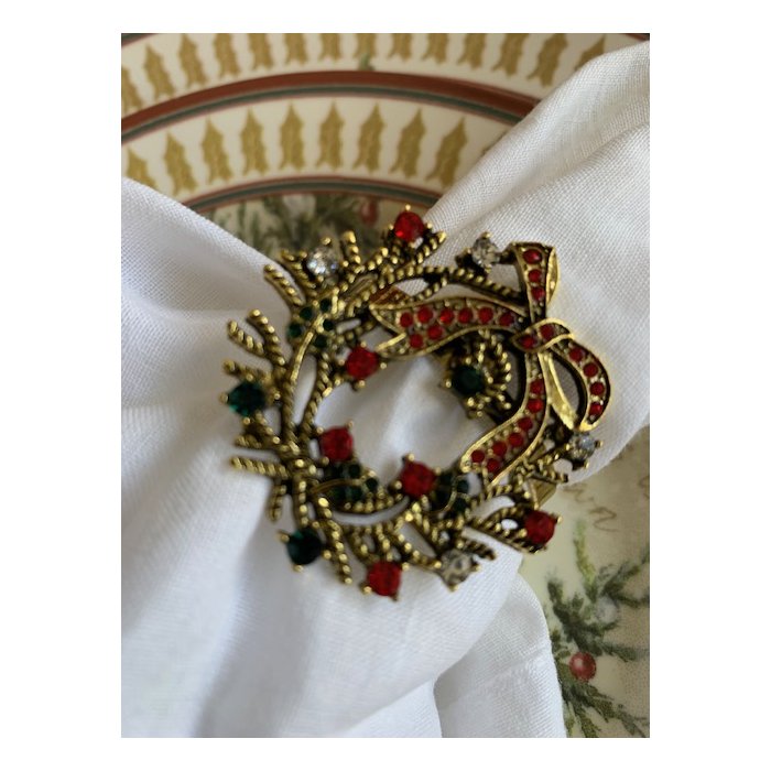 Jogo Argolas Guardanapo 6 pçs Metal com pedras Guirlanda Natal STR