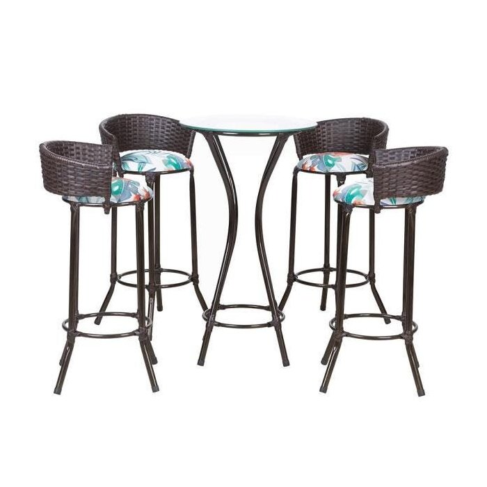Jogo Banquetas Bali 4 Unidades Pedra Ferro A08 e Mesa Bistro com Tampo de Vidro para Bar Lanchonete Pedra Ferro