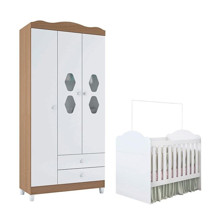 Jogo Berço e Guarda-Roupa Bragança Branco Almendra Acetinado