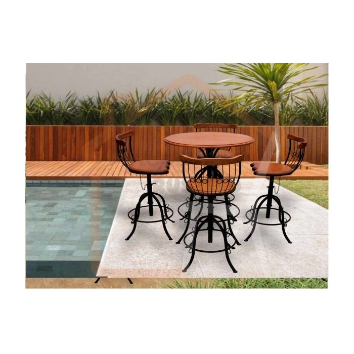 Jogo Bistrô Contemporâneo Ferro e Madeira Rústico para Área Gourmet/Varanda/Cozinha