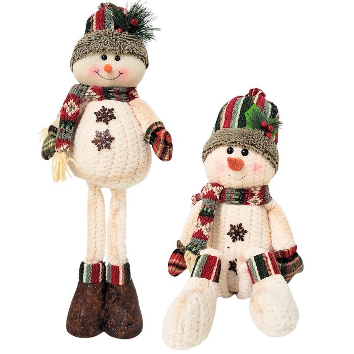 Jogo Boneco de Neve Sentado Perna Mole em Pé 54cm Decor Lã Felpuda e Cachecol Crochê - e Christmas