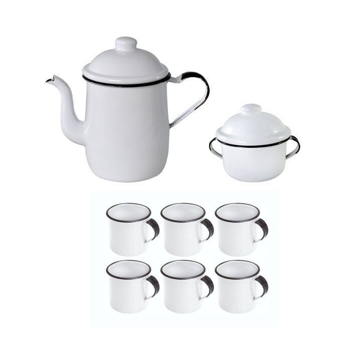 Jogo Bule para Café 1 Litro + 6 Xícaras 150ml + Açucareiro Branco - Metallouça
