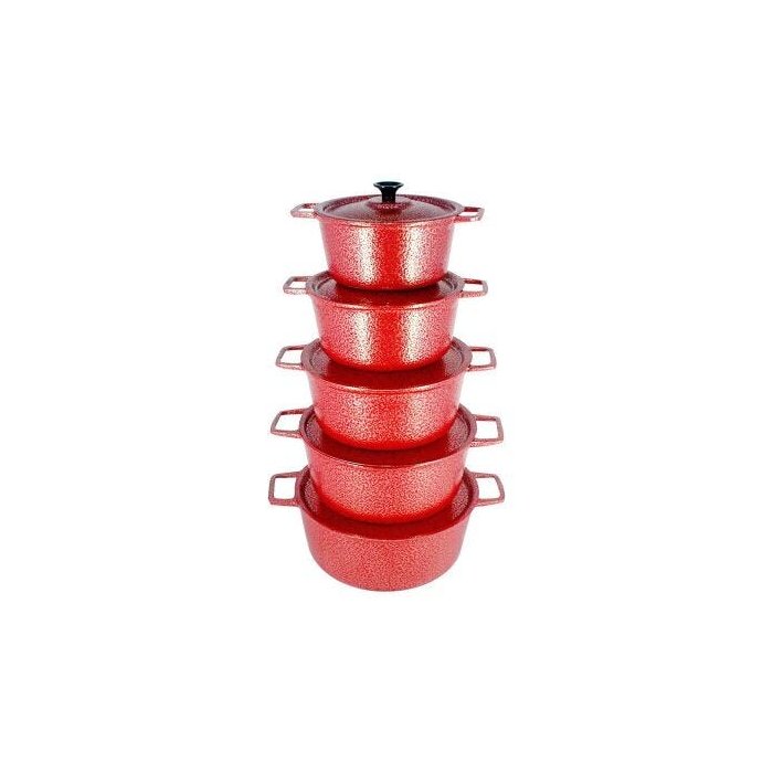 Jogo Caçarola Panela Craqueada Alça Alumínio Fundido Vermelho 16 a 24