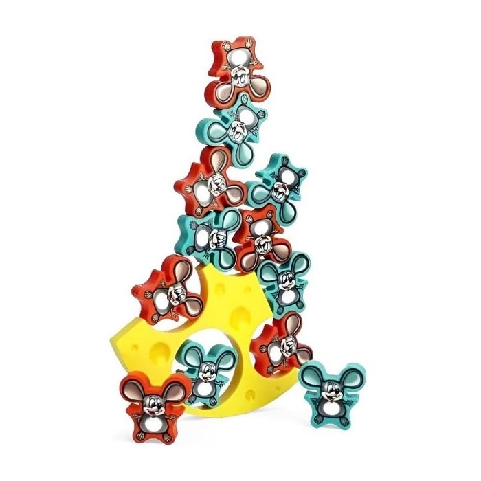Composto por uma base de queijo de plástico e 12 ratinhos, o objetivo é testar suas habilidades de equilíbrio e raciocínio.