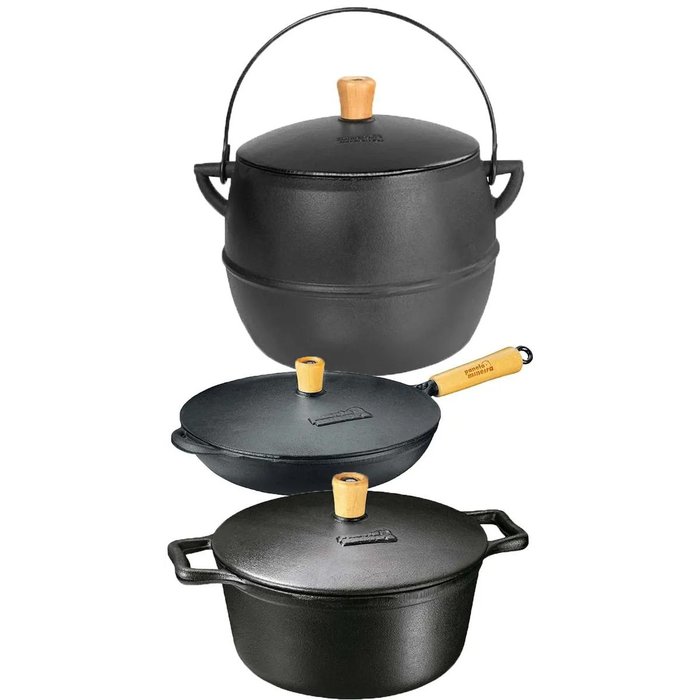 Jogo Caldeirão Bojudo 6, Caçarola 6,5 E Frigideira De Ferro _ Panela Mineira