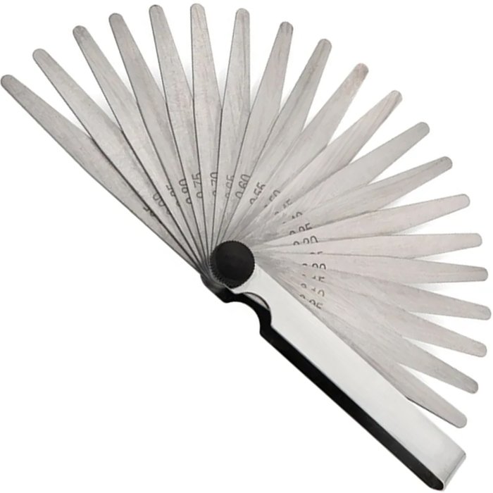 O calibre de folga encontra-se em conjunto de lâminas com medidas diferentes, sendo comumente em formato de leque, também encontrados em modelo avulso e em forma de rolo.