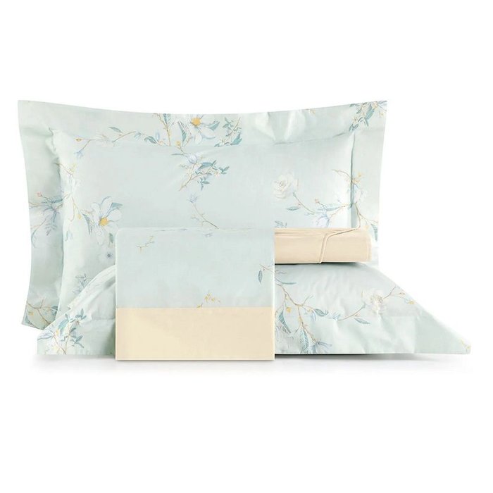 Jogo Cama King Altenburg 200 Fios Lux Magnólias azul claro