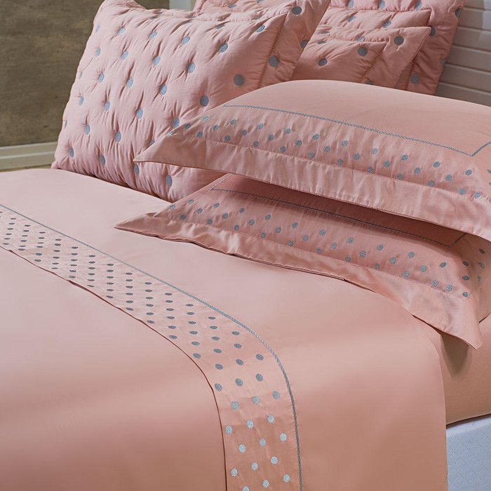 Jogo Cama Lençol Garland Casal Bordado 100% Algodão Acetinado 400 Fios 4 Peças - Rosê E Cinza
