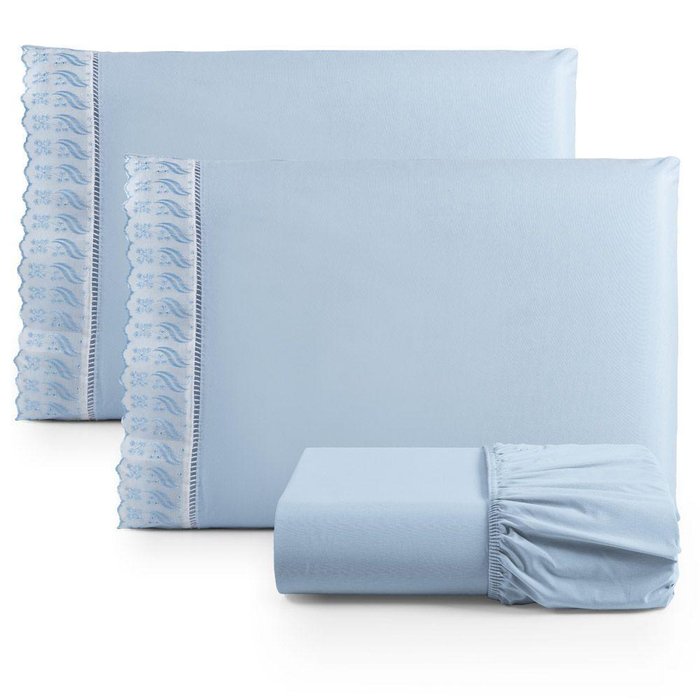 Jogo Cama Lençol Paris Queen Percal 180 Fios 100% Algodão Lese Bordada 3 Peças - Azul Claro Azul Claro